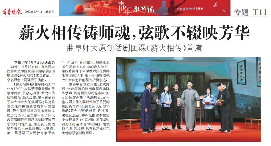 【齐鲁晚报】曲阜师大原创话剧团课《薪火相传》首演