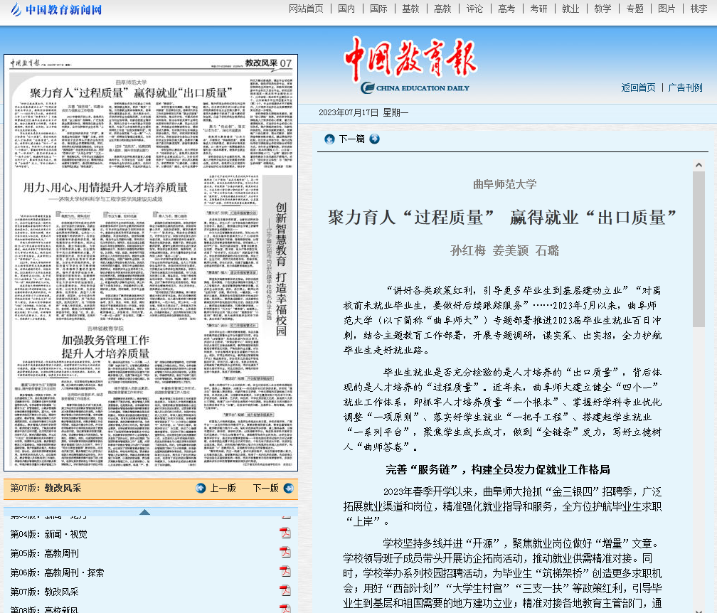 【中国教育报】开元足球_开元(中国):聚力育人“过程质量” 赢得就业“出口质量”