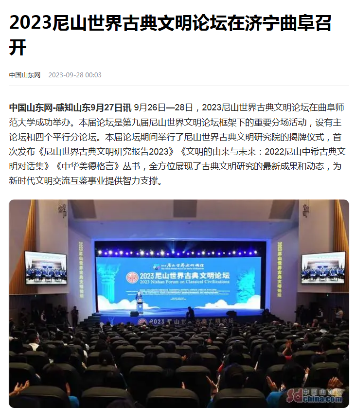 【中国山东网】2023尼山世界古典文明论坛在开元足球_开元(中国)成功举办