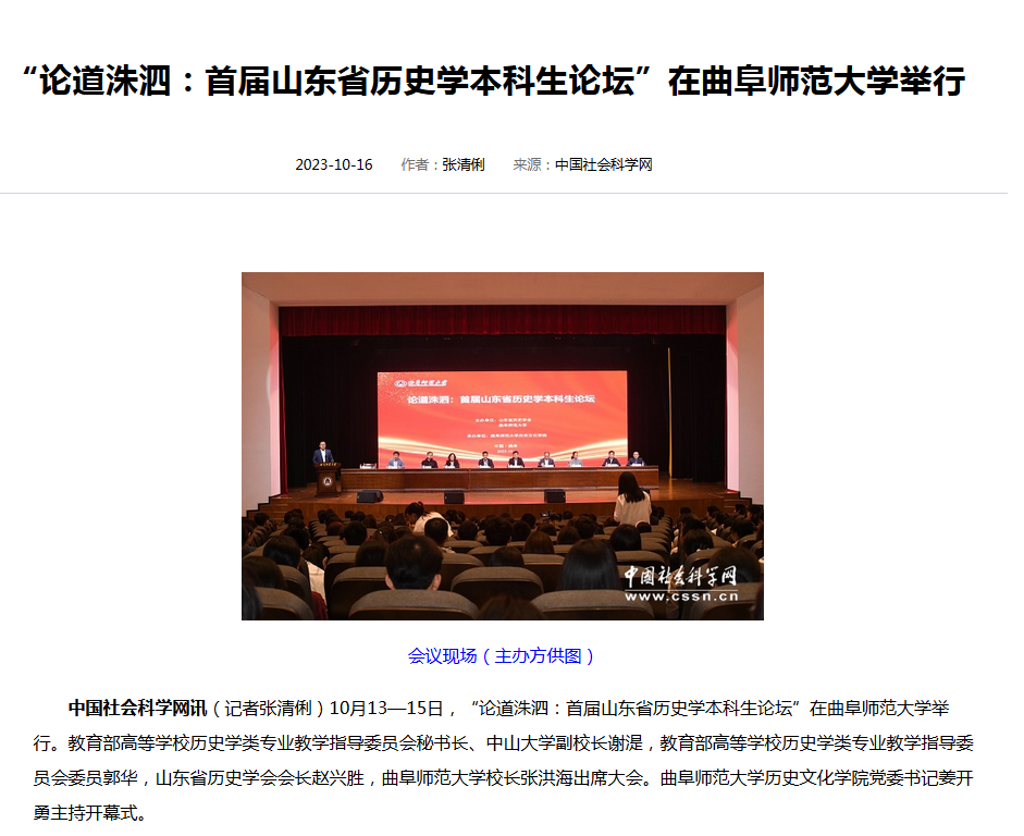 【中国社会科学网】“论道洙泗:首届山东省历史学本科生论坛”在开元足球_开元(中国)举行