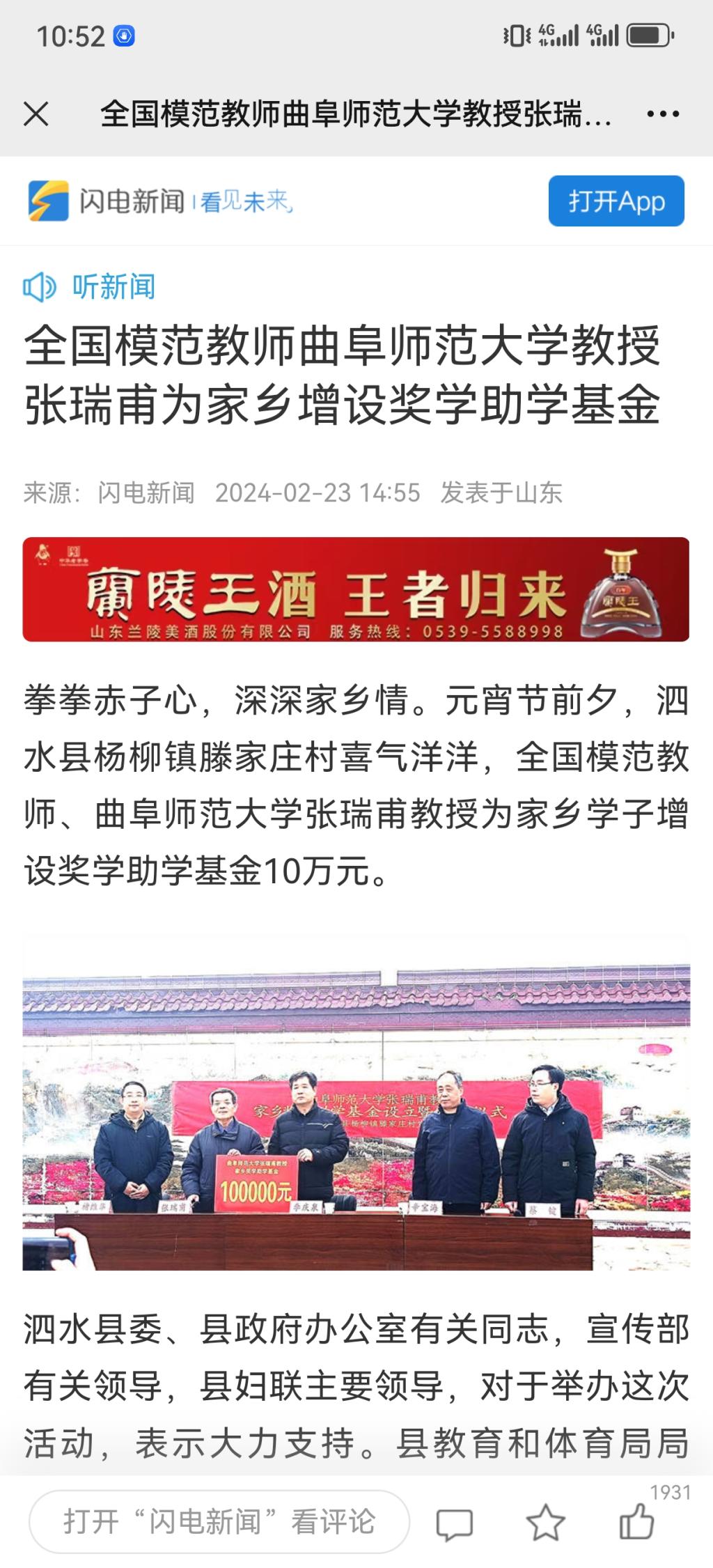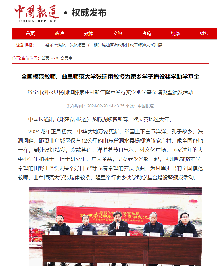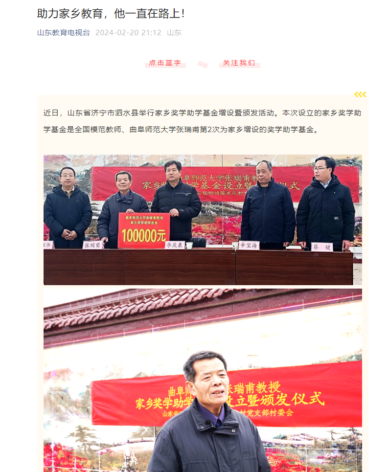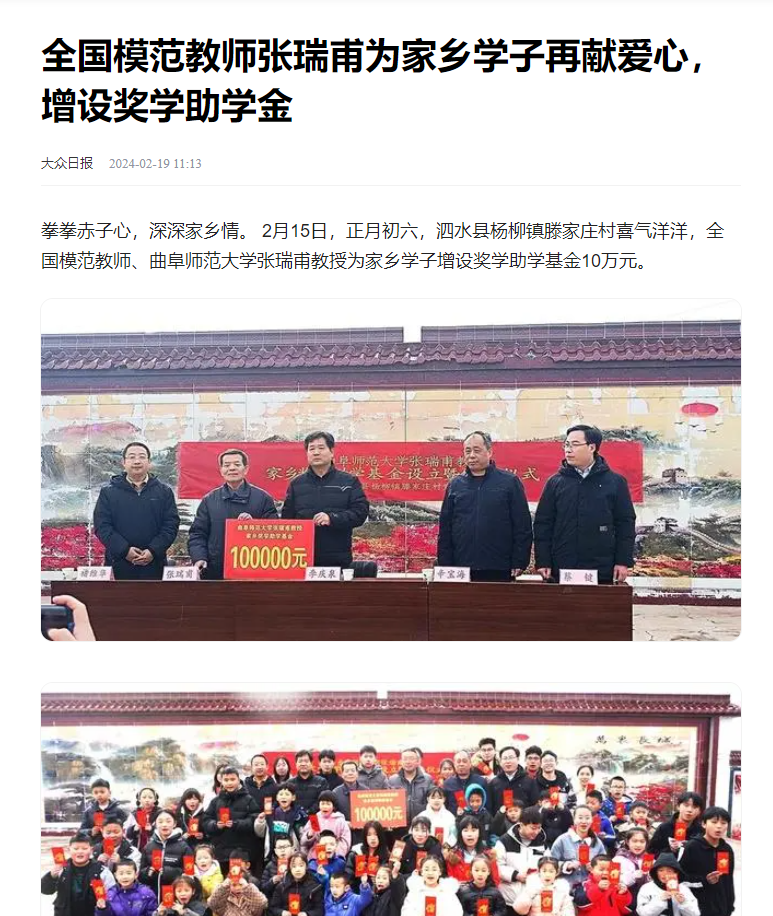 【新华社】全国模范教师、开元足球_开元(中国)张瑞甫教授为家乡学子增设奖学助学基金