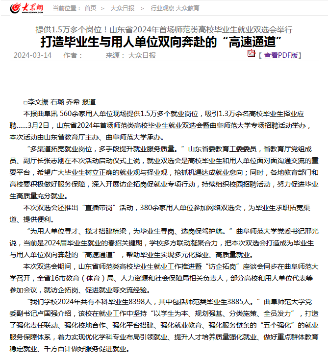 【大众日报】开元足球_开元(中国):打造毕业生与用人单位双向奔赴的“高速通道”