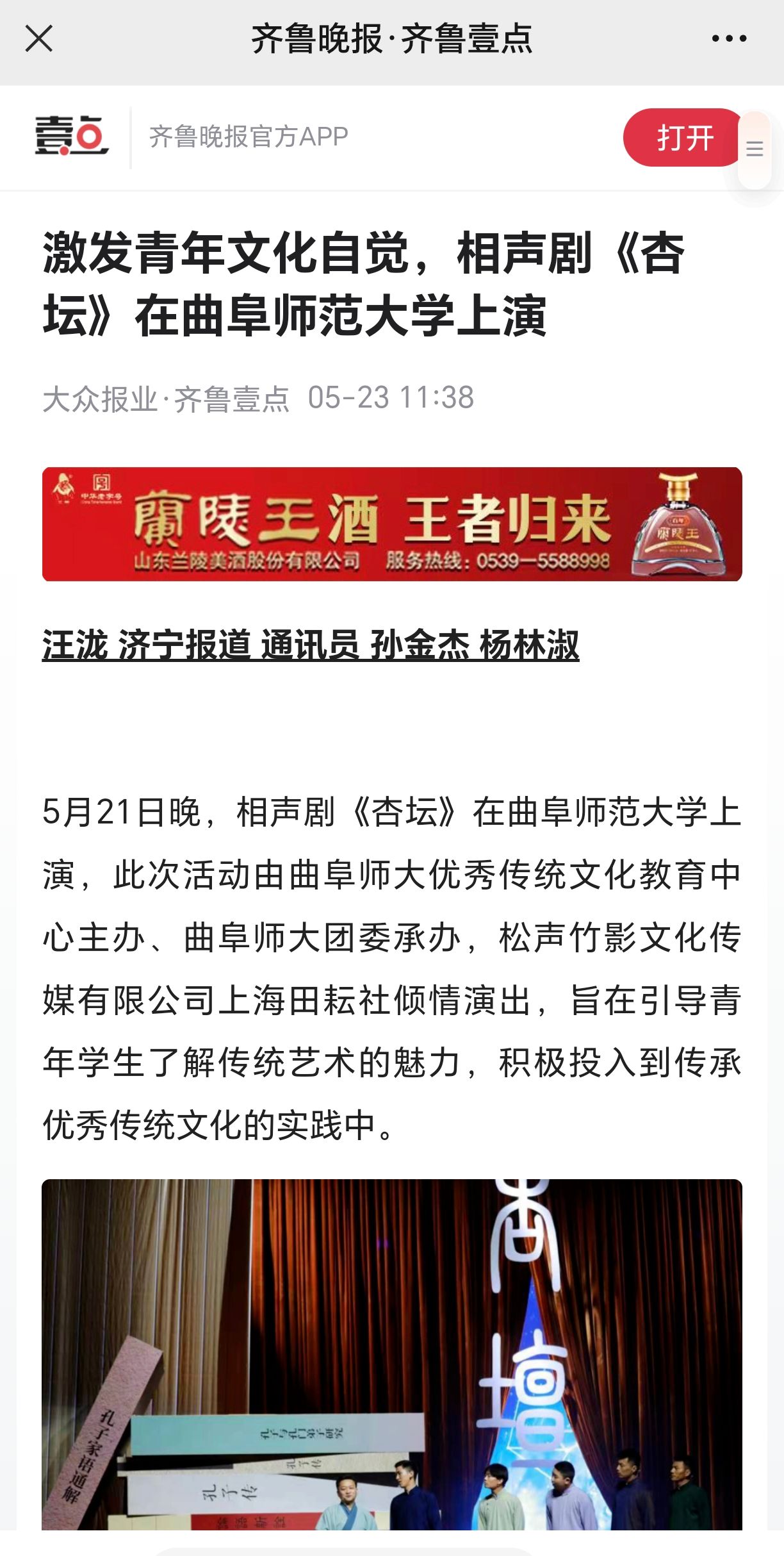 【齐鲁晚报】激发青年文化自觉,相声剧《杏坛》在开元足球_开元(中国)上演