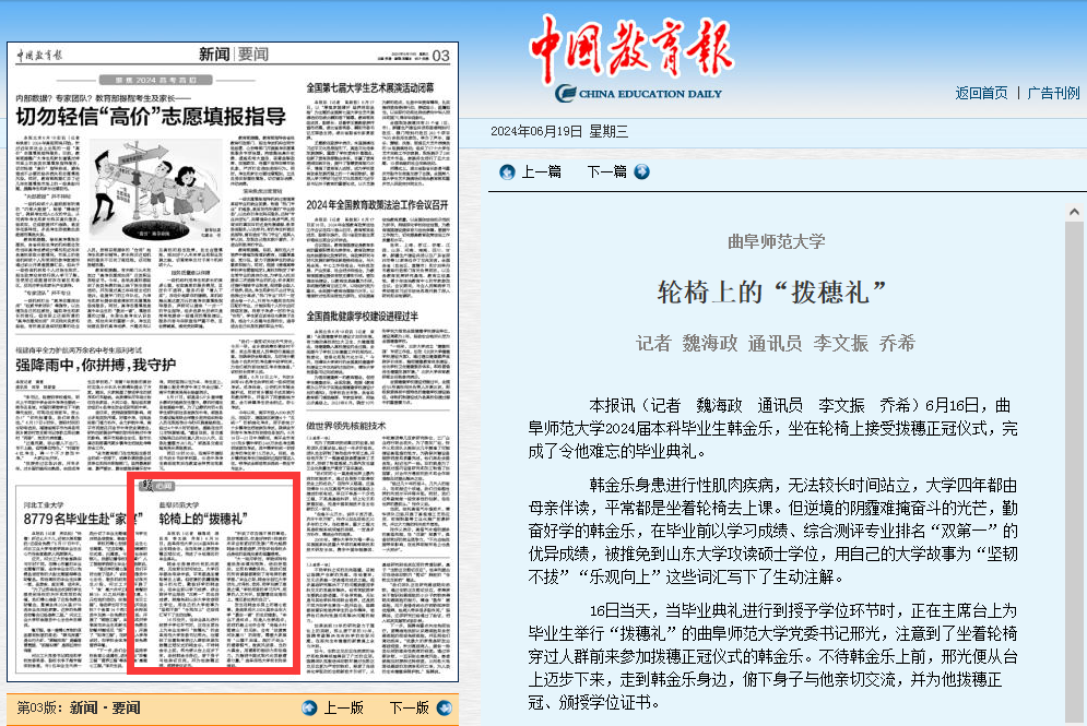 【中国教育报】开元足球_开元(中国):轮椅上的“拨穗礼”