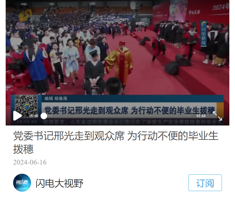 【闪电新闻】党委书记邢光走到观众席 为行动不便的毕业生拨穗
