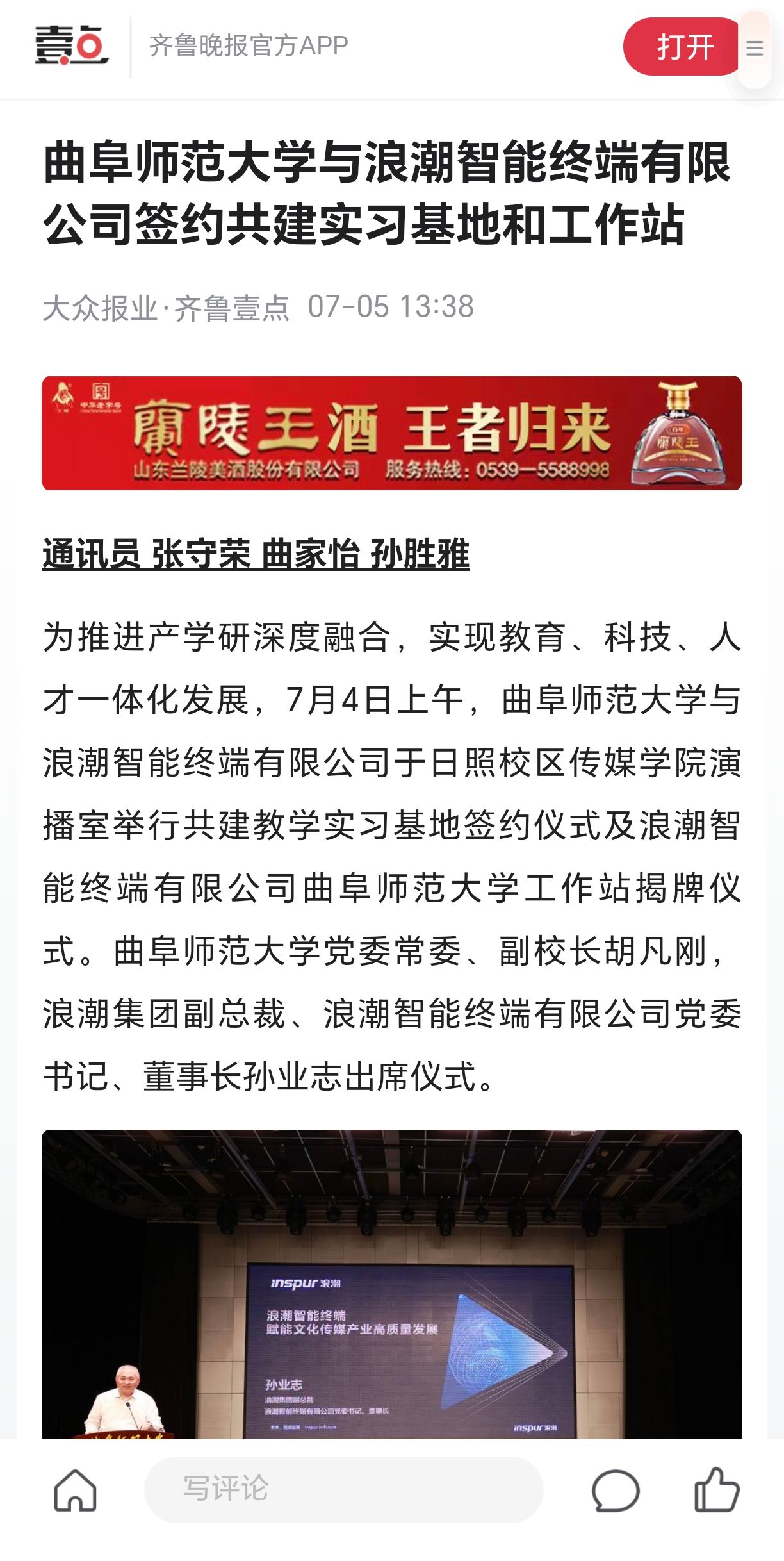 【齐鲁晚报·齐鲁壹点】开元足球_开元(中国)与浪潮智能终端有限公司签约共建实习基地和工作站