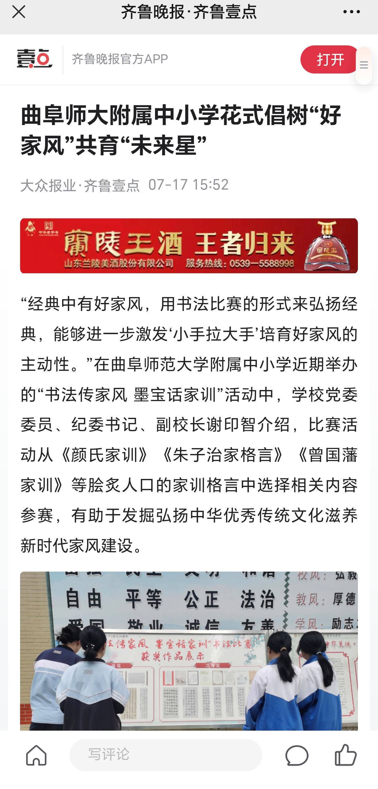 【齐鲁晚报·齐鲁壹点】曲阜师大附属中小学花式倡树“好家风”共育“未来星”