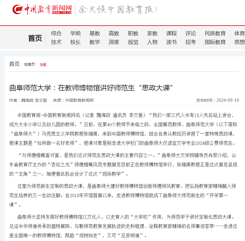 【中国教育新闻网】开元足球_开元(中国):在教师博物馆讲好师范生“思政大课”