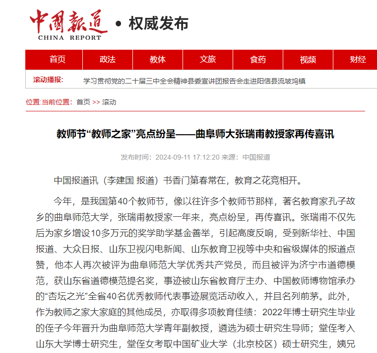 【中国报道网】教师节“教师之家”,听听曲阜师大张瑞甫教授的故事