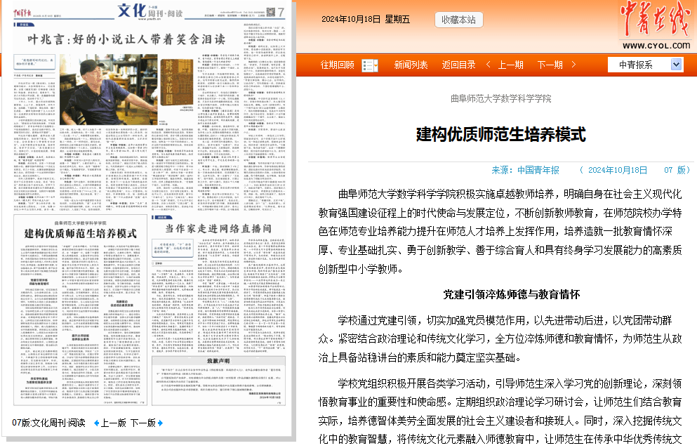 【中国青年报】开元足球_开元(中国)数学科学学院:建构优质师范生培养模式