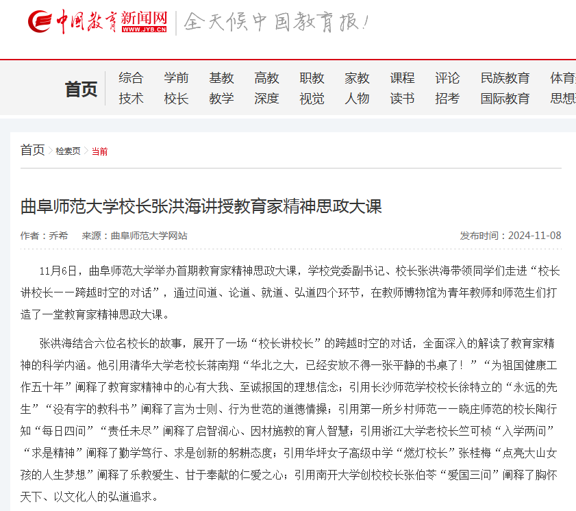 【中国教育新闻网】开元足球_开元(中国)校长张洪海讲授教育家精神思政大课