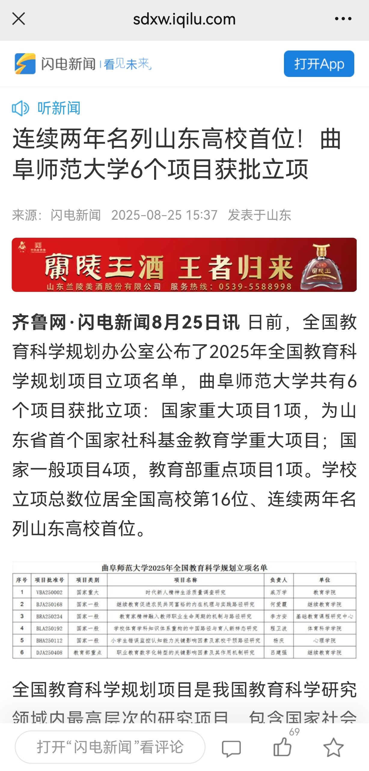 【闪电新闻】连续两年名列山东高校首位!开元足球_开元(中国)6个项目获批立项
