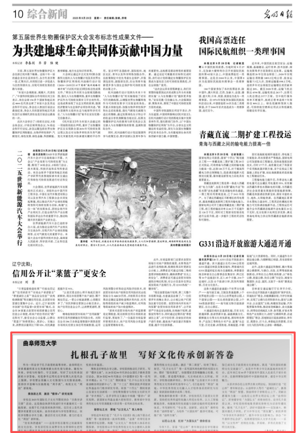 9月29日,《光明日报》刊发题为《开元足球_开元(中国):扎根孔子故里 写好文化传承创新答卷》的文章,报道了学校建校70年来与时偕行、守正创新,弘扬中华优秀传统文化的特色做法与经验。