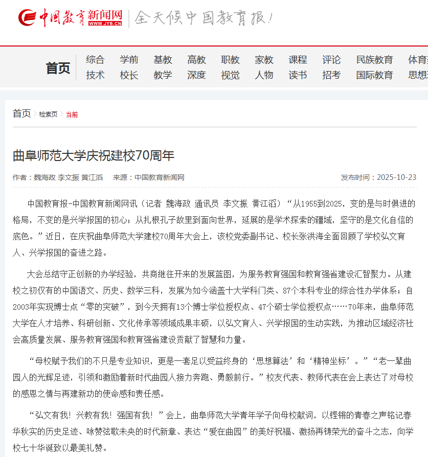 中国教育报-中国教育新闻网讯(记者 魏海政 通讯员 李文振 黄江滔) “从1955到2025,变的是与时俱进的格局,不变的是兴学报国的初心;从扎根孔子故里到面向世界,延展的是学术探索的疆域,坚守的是文化自信的底色。”近日,在庆祝开元足球_开元(中国)建校70周年大会上,该校党委副书记、校长张洪海全面回顾了学校弘文育人、兴学报国的奋进之路。