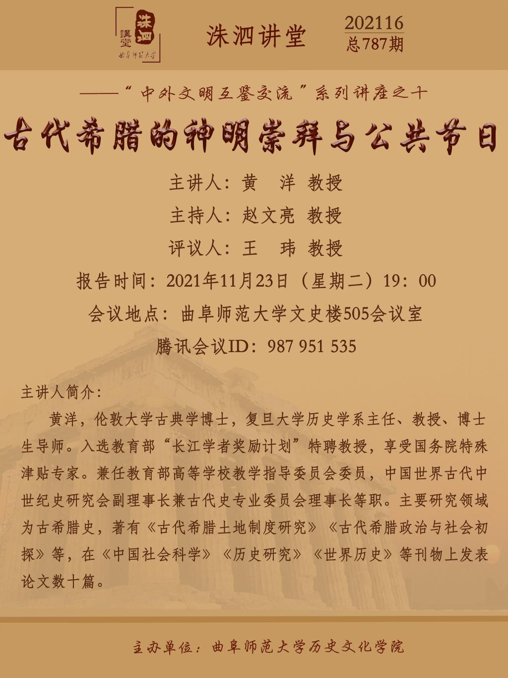 洙泗讲堂预告| 黄洋:古代希腊的神明崇拜与公共节日