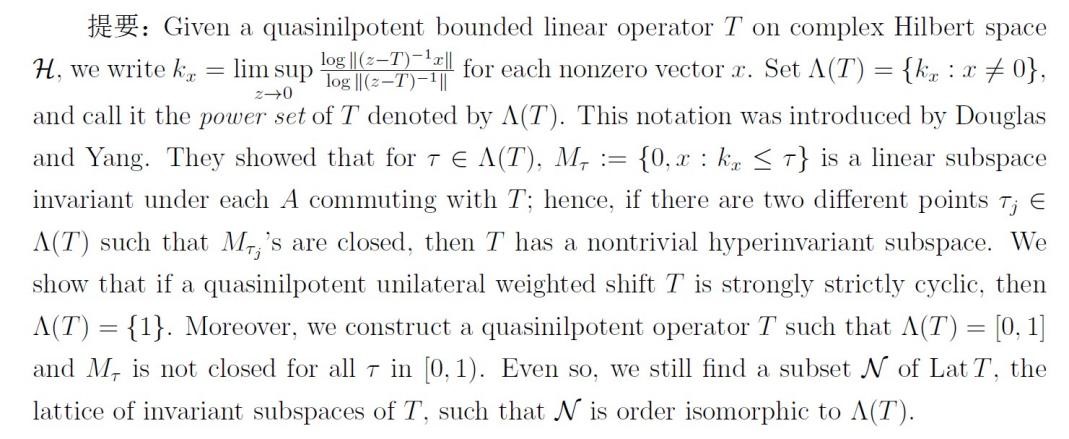 报告题目:The Power Set of Quasinilpotent Weighted Shifts