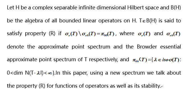 报告题目:Property (R) for functions of operators and its perturbations