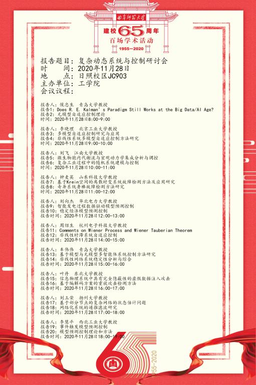 建校65周年百场学术活动-复杂动态系统与控制研讨会