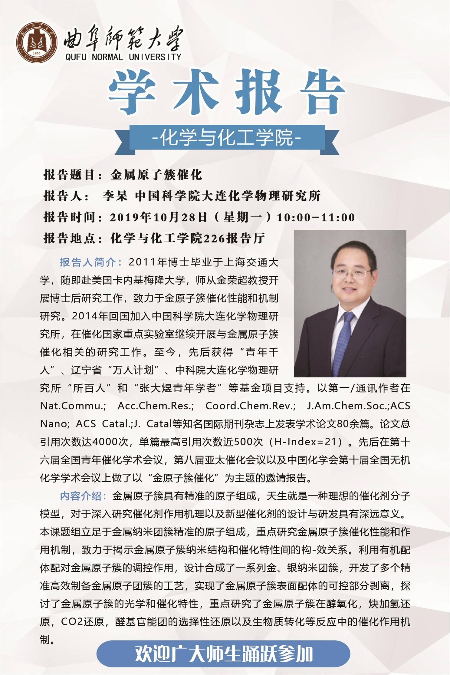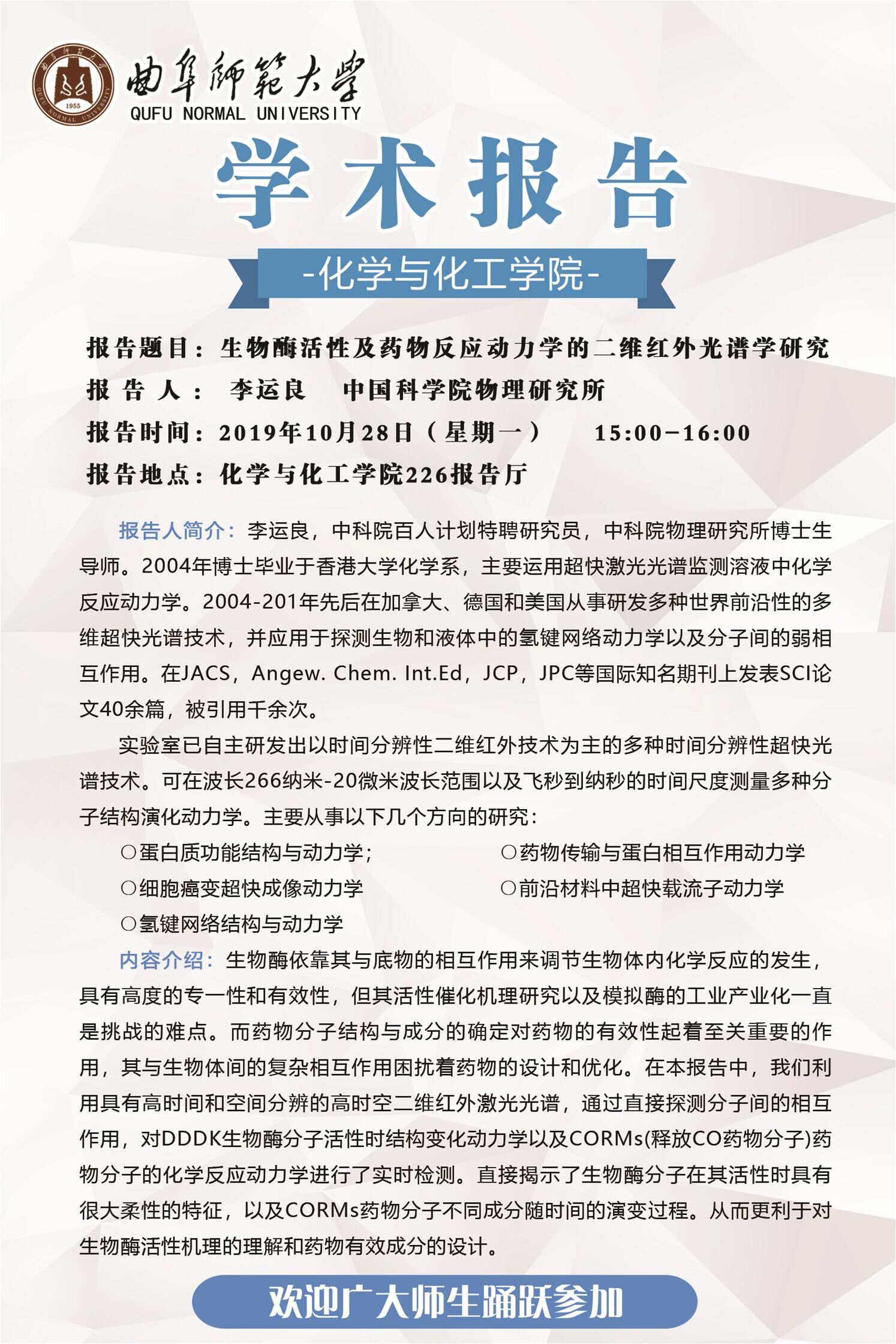 化学与化工学院学术报告预告