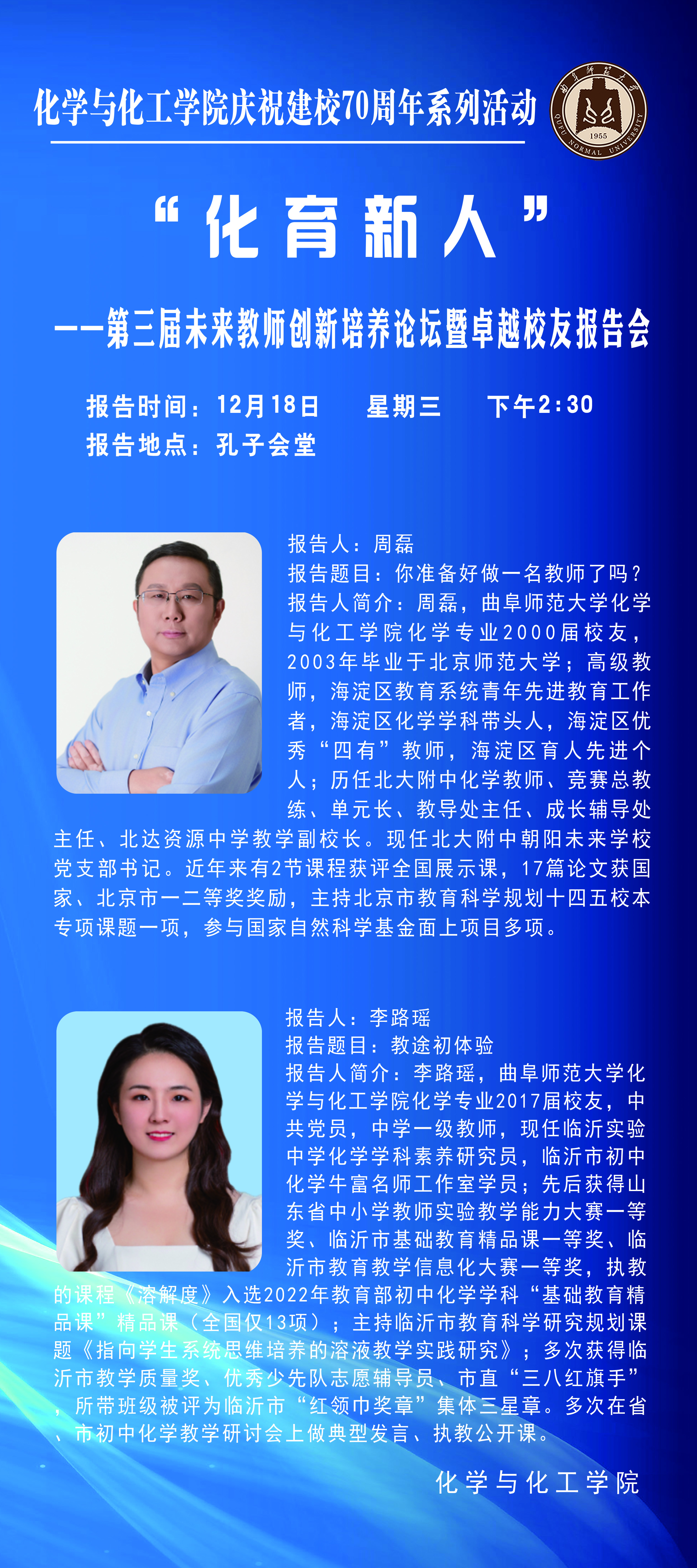 化学与化工学院庆祝建校70周年系列活动:第三届未来教师创新培养论坛暨卓越校友报告会
