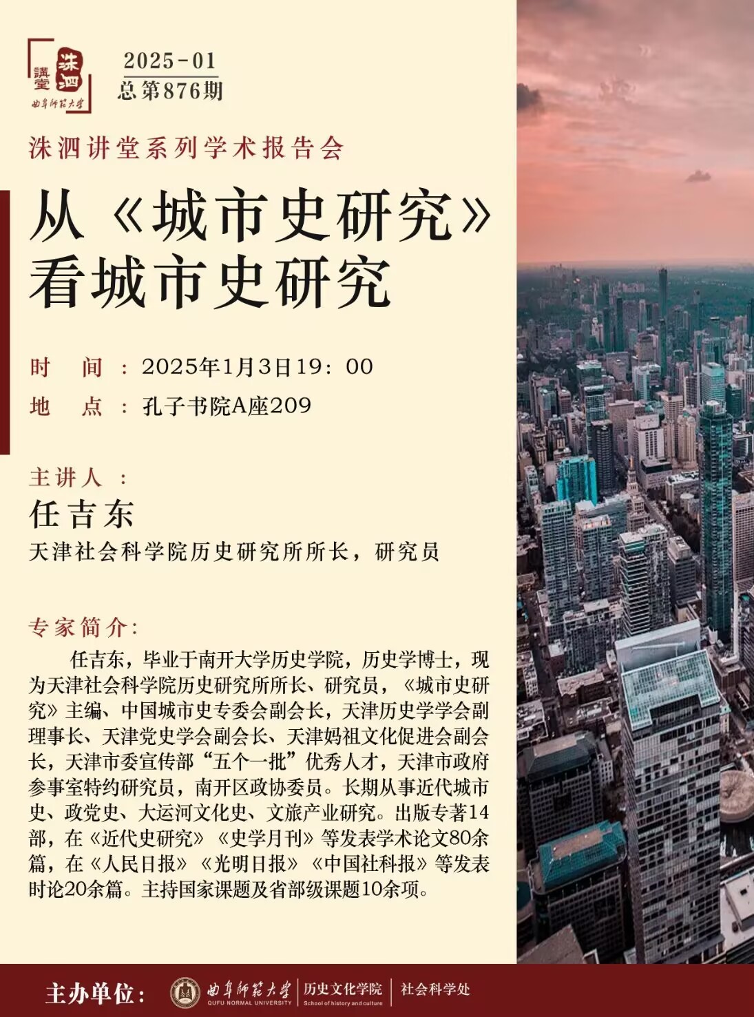 洙泗讲堂预告|任吉东:从《城市史研究》看城市史研究