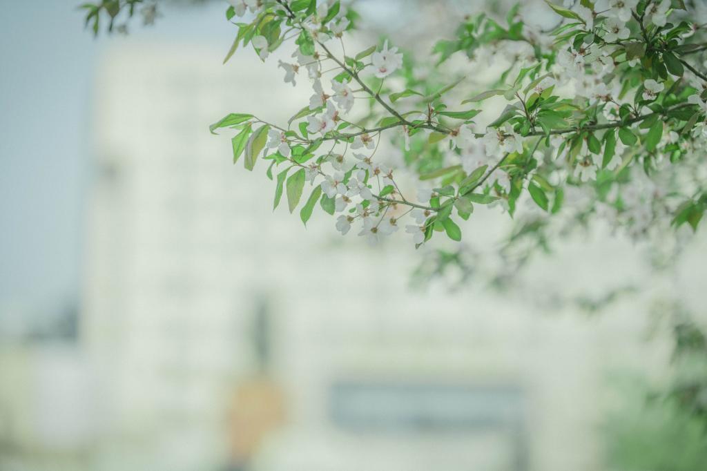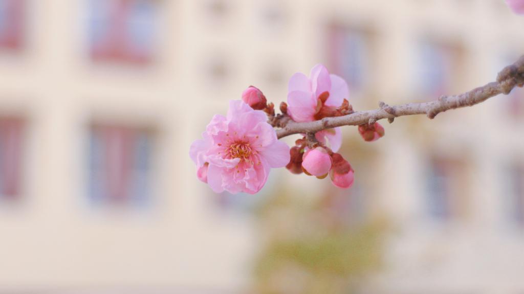 图书馆的落地窗前飘落几片早樱