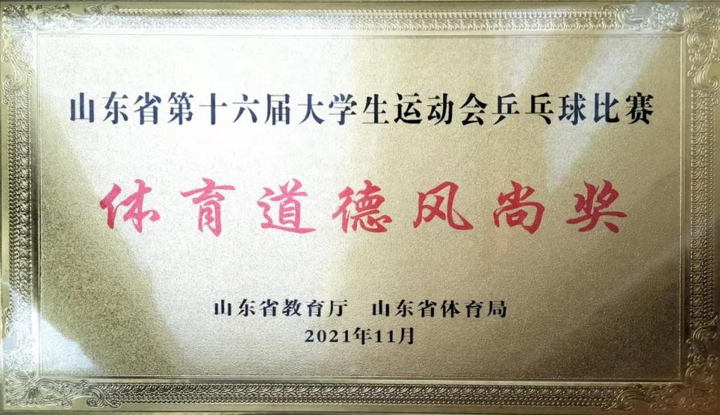 曲阜师大新闻中心讯 11月30日至12月5日,由山东省教育厅、山东省体育局主办,山东大学承办的山东省第十六届大学生运动会乒乓球比赛在青岛职业技术学院举行。本届比赛共设甲、乙、丙三个组别,来自全省各高校49支队伍600余人参加了各组比赛,赛事规模创造历史新高。经过6天紧张激烈的比赛,我校乒乓健儿取得甲组混合双打冠军、女子双打冠军两枚金牌,甲组团体总分第四名和丙组团体总分第六名的好成绩,并荣获体育道德风尚奖,取得体育竞技和精神文明的双丰收。