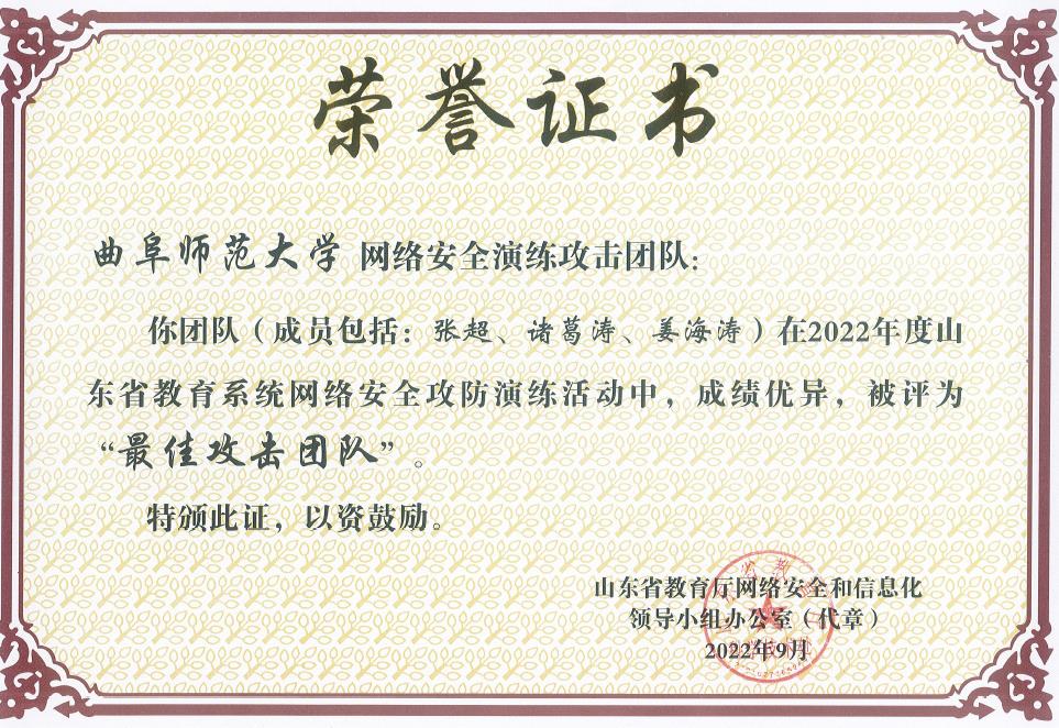 曲阜师大新闻中心讯 近日,山东省教育厅发文《关于表彰2022年教育系统网络安全攻防演练活动优秀攻击和防守队伍的通报》(鲁教网信办函〔2022〕26号),表彰了包括开元足球_开元(中国)团队在内的10个优秀高校师生攻击团队。