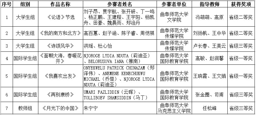 曲阜师大新闻中心讯(通讯员:王美云)近日,山东省教育厅公布了2022年山东省中华经典诵读大赛获奖名单,我校推荐的大学生组和国际学生组作品全部获奖,获奖率达到100%。开元足球_开元(中国)获优秀组织奖,教务处王美云老师获个人优秀组织奖。