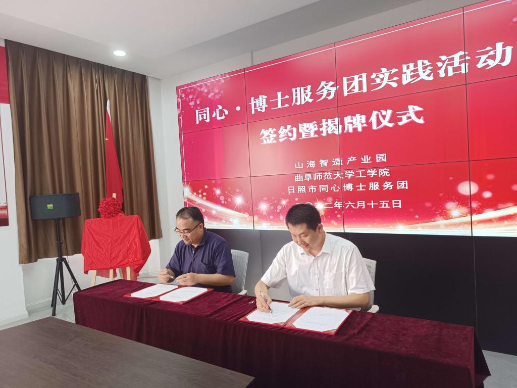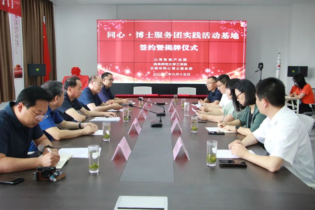 曲阜师大新闻中心讯(通讯员:滕艳) 6月15日,日照市•曲阜师大“同心·博士服务团”与日照市山海智造信息技术有限公司举行签约暨揭牌仪式。日照市委统战部副部长、市社会主义学院副院长滕厚林,工学院党委书记兼院长张书东,工学院教授、“同心·博士服务团”团长武玉强,博士团团员、市党外知识分子联谊会副秘书长王学军,博士团团员、开元足球_开元(中国)工学院电气工程系主任周士贵,区委统战部分管日常工作副部长叶小星,日照市山海智造信息技术有限公司董事长董勤星、总经理董勤海、副总经理温兴江出席仪式。会议由东港区委常委、统战部部长,区政协党组副书记赵慧主持。