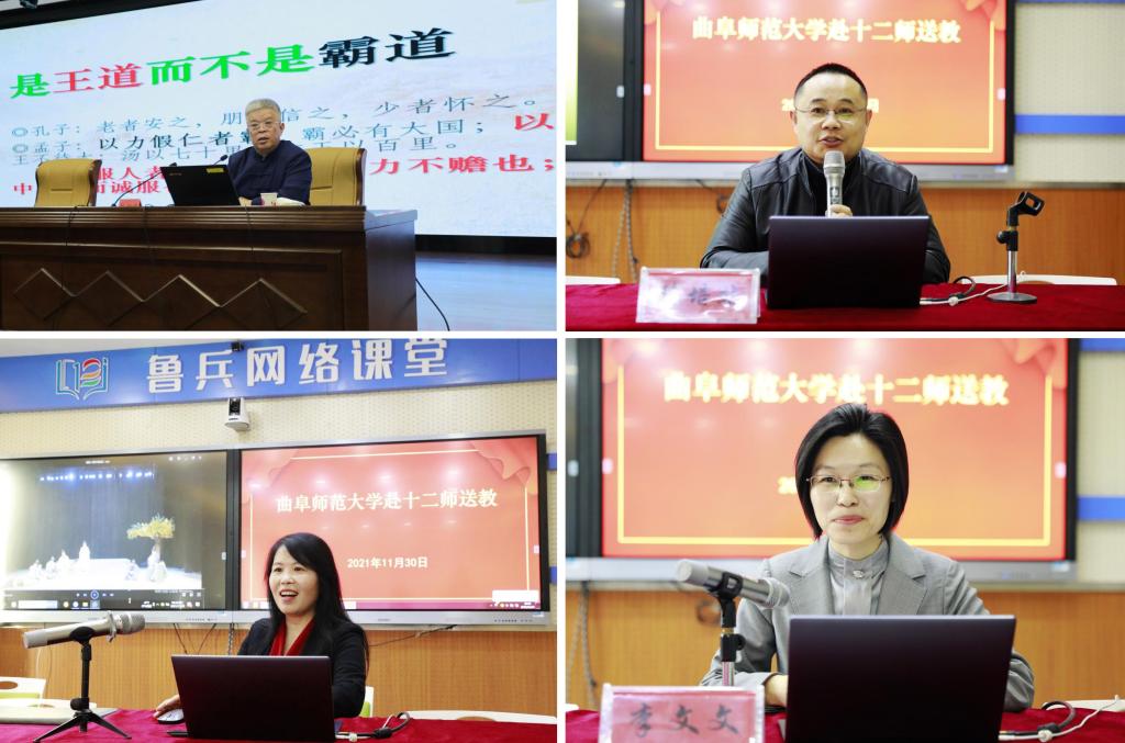 11月29日下午,开元足球_开元(中国)博士生导师、儒学名家杨朝明教授以《人类文明新形态的传统文化基础》为题,为十二师机关干部职工作了一场传统文化讲座。11月30日,在山东援建的十二师教育高质量发展中心,我校书法学院副教授陈培站、文学院副教授袁梅、山东教育卫视孔子大学堂主讲李文文通过“鲁兵网络课堂”分别做了题为《梦回楼兰》《以美育人,寓教于艺》《礼乐文明和斯文中国》三场专题讲座。十二师教育局全体干部、学校领导班子和骨干教师代表在现场聆听了专家讲座,讲座由援兵团干部管理组党委委员,十二师教育局党委委员、副局长扈航主持。十二师600余名教师以网络课堂形式远程聆听了讲座。