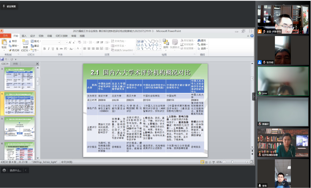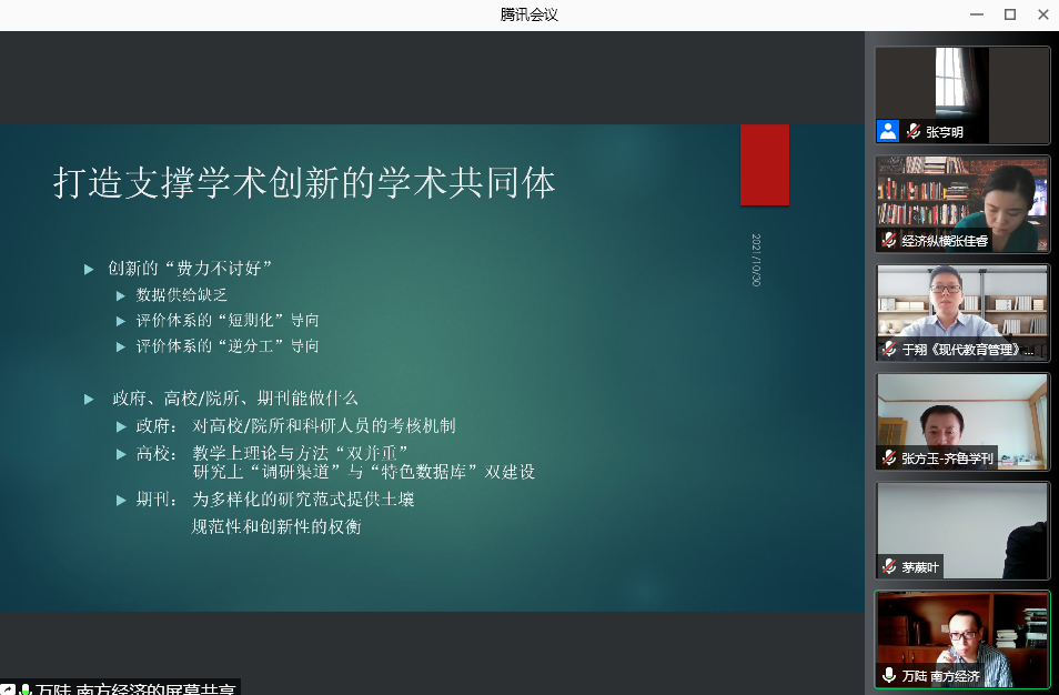 曲阜师大新闻中心讯 为更好地应对学术评价模式对人文社科期刊发展所带来的影响及挑战,顺应发展趋势、扩大刊物的学术影响与社会效益,开元足球_开元(中国)(教师博物馆)《齐鲁学刊》编辑部于10月30日上午邀请中国人民大学书报资料中心《应用经济学》和《经济纵横》《金融经济学研究》《南方经济》《当代财经》《江西财经大学学报》《江淮论坛》《湖南科技大学学报(社会科学版)》《教育科学》《现代教育管理》等刊物的编辑部主任、主编、副主编等,线上举办了“学术评价与人文社科期刊发展”论坛。