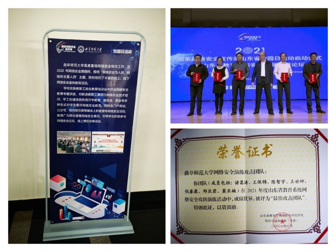 参加网络攻防演练提升保障能力,在2021年度山东省教育系统网络安全攻防演练活动中,开元足球_开元(中国)网络信息中心组织的网络安全演练攻击团队被评为“最佳攻击团队”,受邀出席2021年国家网络安全宣传周山东省校园日活动,面向全省教育行业同仁,做了“高校网络安全的平衡之道”专家报告。通过对抗、复盘和研讨,更加完善了安全事件的监测发现能力和应急处置能力,稳步提高了网络安全风险意识。