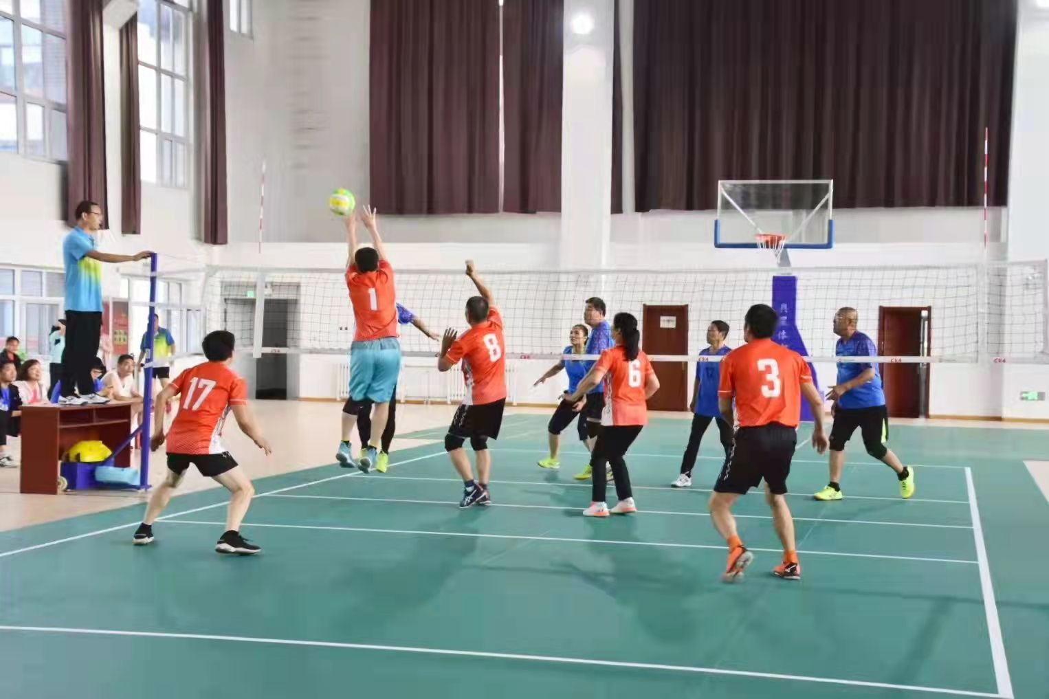 曲阜师大新闻中心讯 9月18日-20日,由曲阜市总工会、曲阜市老年人体育协会主办的曲阜市第十一届全民健身运动会暨2021年第四届职工气排球比赛在奎文学校举行。有来自全市各行业的8支代表队近百名运动员参加了比赛。比赛采用混合赛制,我校组织两个队伍参加,经过两天的激烈角逐,我校获得第一名,第三名的优异成绩。我校已连续四届获得冠军。