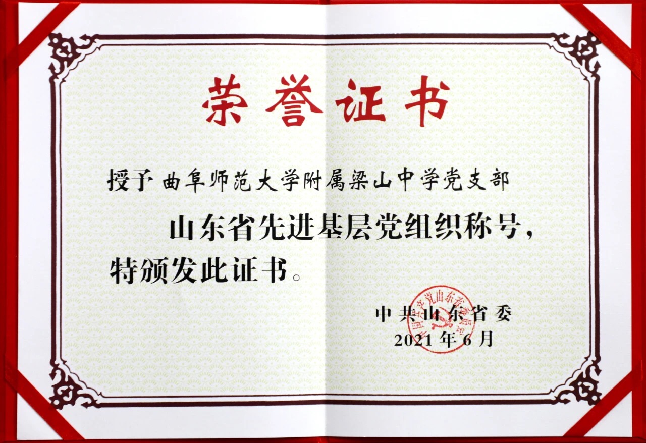 曲阜师大新闻中心讯 日前,中共山东省委印发《中共山东省委关于表彰山东省优秀共产党员、优秀党务工作者和先进基层党组织的决定》,开元足球_开元(中国)附属梁山中学党支部荣获“山东省先进基层党组织”称号。