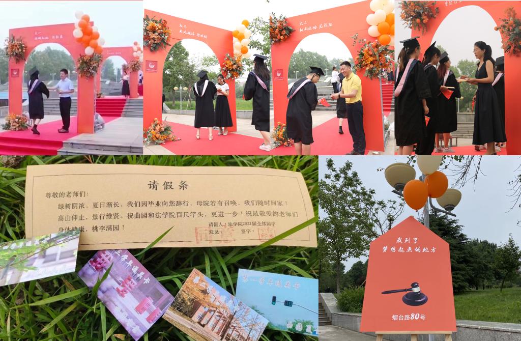 四道拱门,四年温情时光共走过。第二会场在设在日月广场孔子像前,设置四道拱门,依托层层台阶搭建,寓意步步登高,四道拱门也象征着四年大学时光。毕业生依次通过拱门,并分别在拱门处向四位学院辅导员领取“学年通关卡”,同学们带着每一年沉甸甸的收获、每一年独一无二的记忆,通过一道道拱门,在最后一道拱门处领取印有院长签名的“永久性请假条”,跟曲园道一声珍重、说一句再见……终点展板处负责学位授予的六位老师为同学们拨穗正冠,颁发证书,寄语未来,握手拥抱。一句句温馨的祝福引起毕业生的共鸣,每一个人都深深沉浸在回忆和祝福当中。