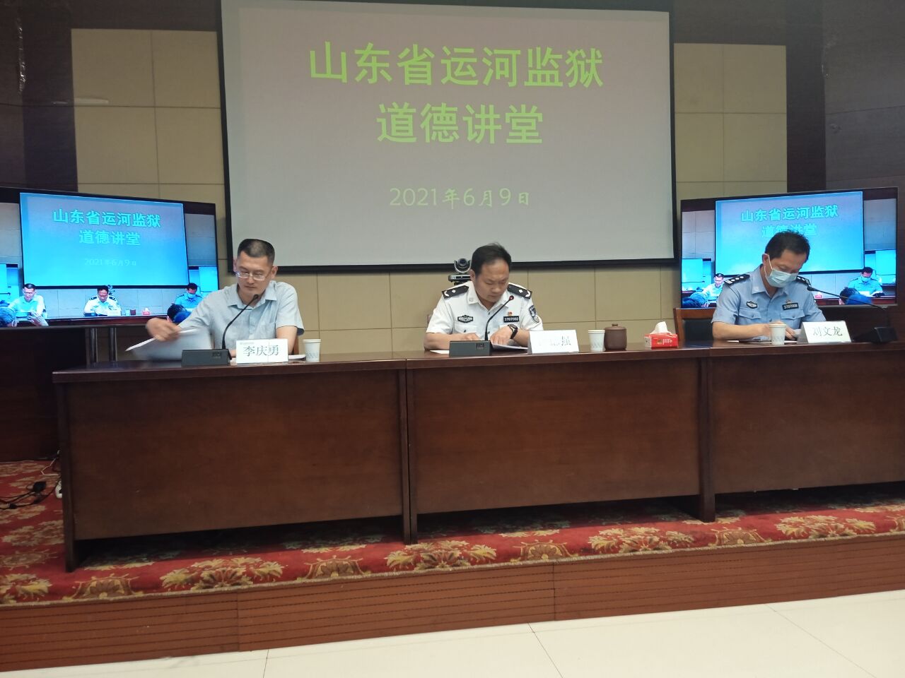曲阜师大新闻中心讯 6月9日,我校关心下一代工作委员会在山东省运河监狱举办道德讲堂。运河监狱伊德强政委、刘文龙副政委动员全体干警和服刑人员启动“学习文史哲、创造新辉煌”的道德建设工程,并诚挚感谢开元足球_开元(中国)三十年来对监狱教育工作的一贯支持。开元足球_开元(中国)王文西教授、刘奉光教授则结合当前形势,阐解了爱党爱国、共克时艰、团结奋进的道德基础——中国优秀的文史哲传统文化。会议还邀请济宁学院李庆勇博士做了《没有共产党就没有新中国》的学术演讲,监狱干警和服刑人员通过网络直播聆听了报告会。