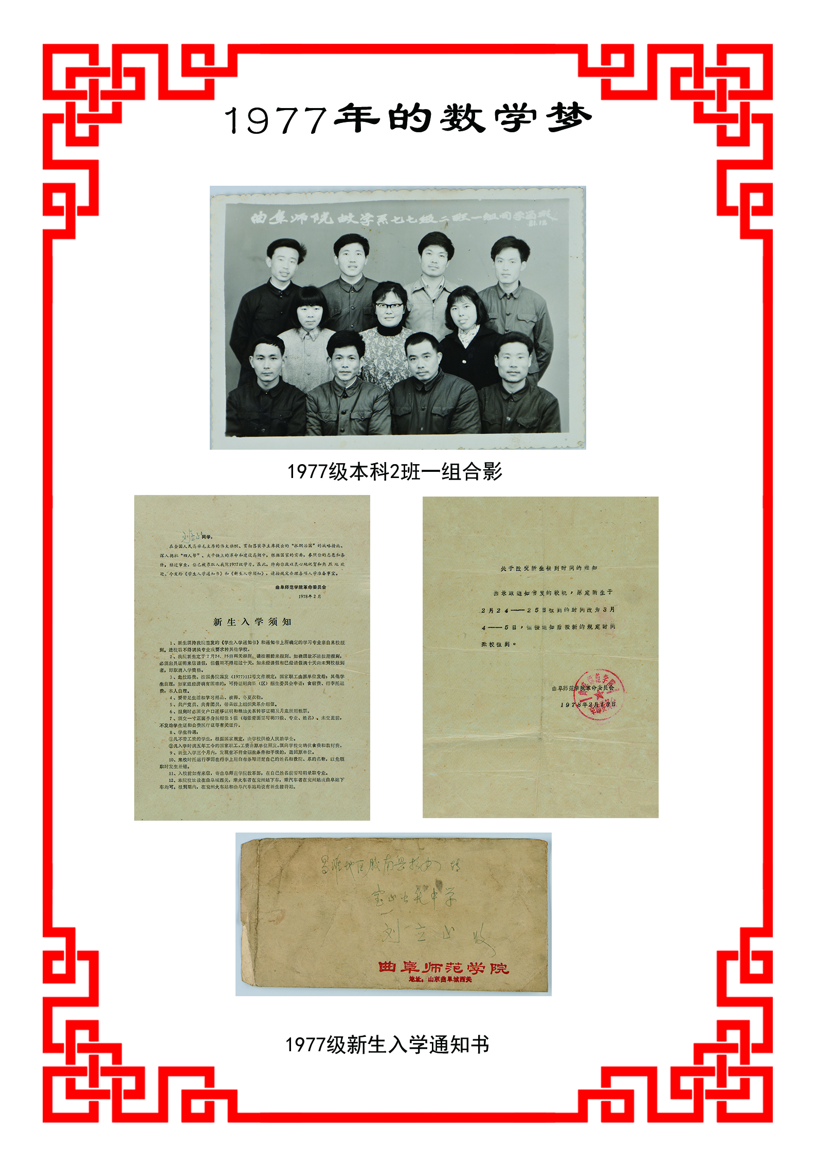 我校1977级新生入学通知书(由刘立山老师提供)