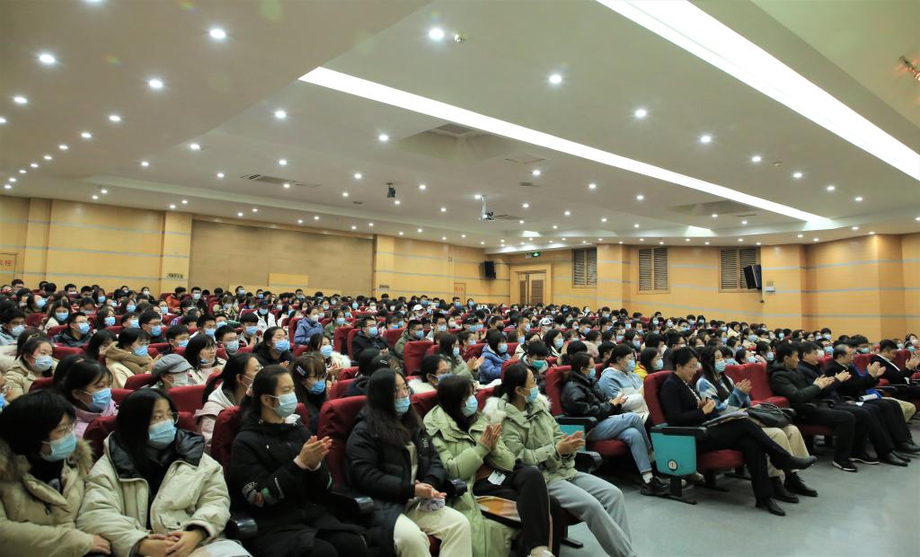 报告会上,优秀校友崔久秀做了题为“从这里出发,遇见天山燕园”的励志报告。她围绕自己在曲园求学经历、新疆工作经历、备战考研经历、北大求学经历四部分与在座的同学们分享了自己别样绚丽的青春故事。她讲述了自己在曲园生活学习的点点滴滴,回忆起学校老师远赴新疆看望自己时的温暖与感动,牢记习近平总书记对新时代支边青年的寄语和嘱托,扎根边疆服务社会受到当地各族群众认可和支持,以及一边工作一边备战考研的艰辛与快乐和她到了北大读研以后的感想和感悟。报告鲜活生动,在学生中引起强烈反响和共鸣,赢得了阵阵掌声。
