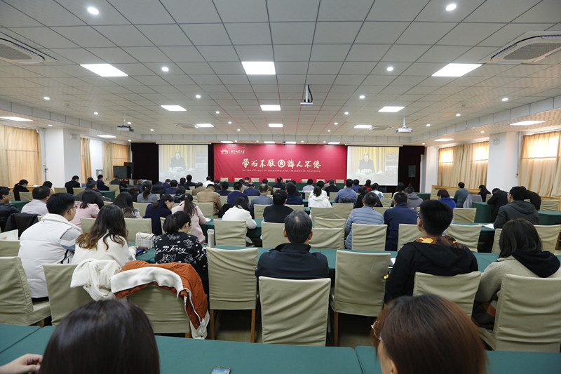 本次党的十九届五中全会精神中央宣讲团报告会由中央宣讲团成员、教育部党组书记、部长陈宝生同志作宣讲报告,陈宝生部长在报告中结合教育事业发展实际,围绕“十四五”时期战略机遇,从“新形势、新阶段、新理念、新格局、新目标、新要求”六个方面,详细解读了《中共中央关于制定国民经济和社会发展第十四个五年规划和二〇三五年远景目标的建议》的核心要义,厘清了今后一个时期国民经济和社会发展的指导方针、目标任务和战略举措,对党的十九届五中全会精神进行了科学系统、深入浅出的阐释解读。