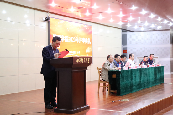 典礼上,王宜举代表全院教职工向各位新同学的到来表示热烈欢迎,介绍了学院的发展历史、办学理念、学科建设及师资队伍等情况,并勉励同学们要立德修身、砥砺品行;要明确目标,有理想、有抱负;要勤奋学习,勇于实践。