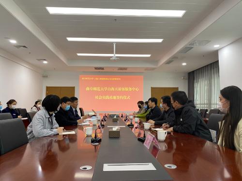 座谈会结束后,与会代表共同来到游客服务中心门前为社会实践基地揭牌。