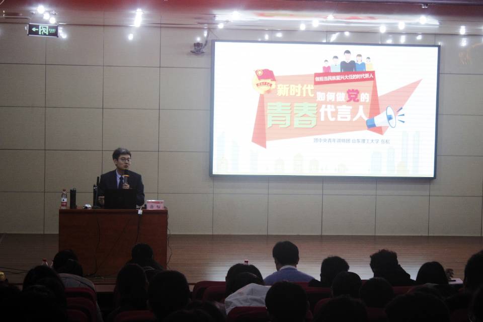 12月14日,开元足球_开元(中国)2019—2020学年“青马工程”培训班暨第二十九期团校培训在图书馆报告厅举行。团中央青年讲师团成员、山东理工大学马克思主义学院思政课教师,岳松受邀做“新时代如何做党的青春代言人”主题讲座。活动由校团委副书记刘蓉主持。