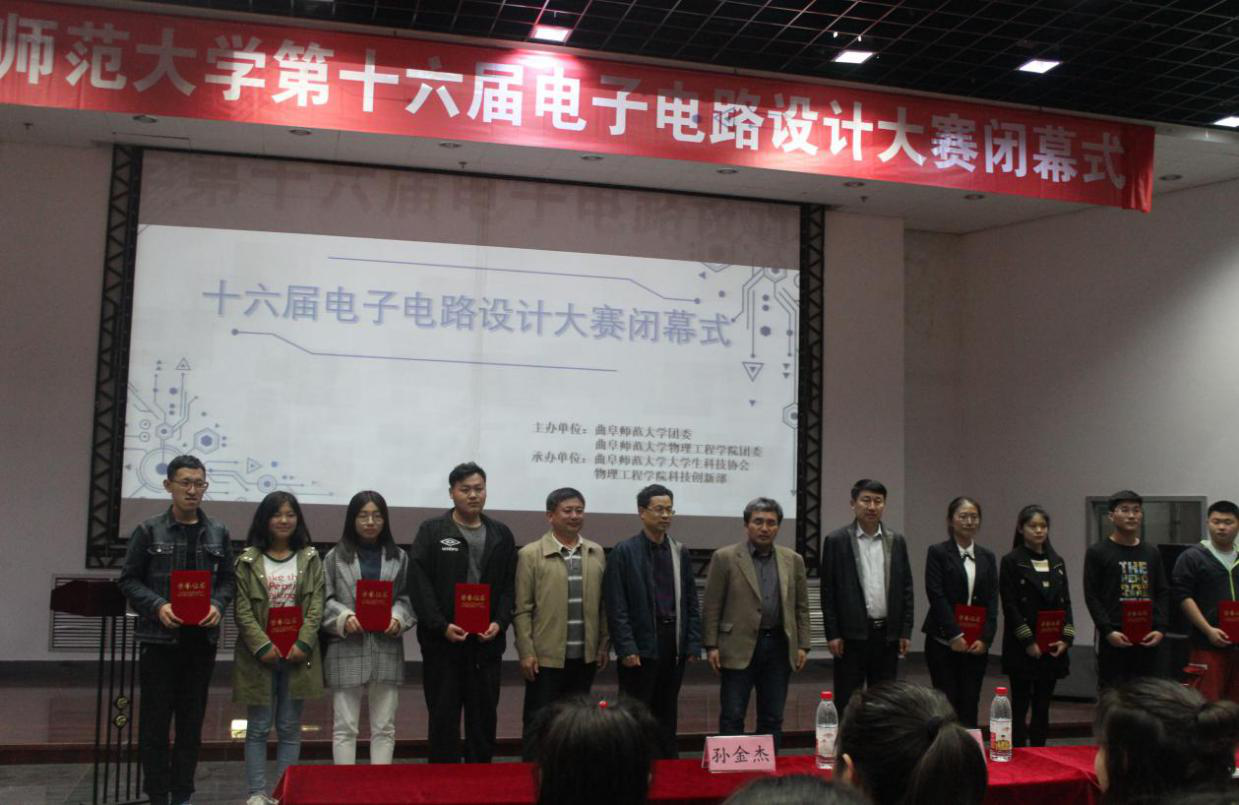 4月26日,物理工程学院第十六届电子电路设计大赛圆满闭幕。此次大赛以“创新有我,畅想生活”为主题,由开元足球_开元(中国)团委联合物理工程学院学生会主办,开元足球_开元(中国)大学生科技协会、物理工程学院学生会科技创新部共同承办。比赛先后在大学生活动中心广场、综合教学楼和实验中心举行。大赛闭幕式在大学生活动中心401教室举行,校团委书记宋国栋,我院党委副书记孙金杰、副院长王海龙以及特邀嘉宾赵建平教授出席闭幕式。闭幕式由我院团委副书记高琳然主持。