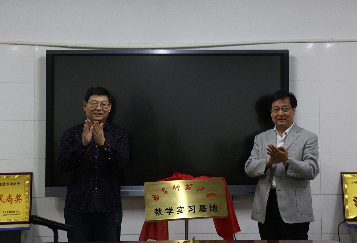 在金乡县,文学院党委副书记王作茂、数学科学学院党委副书记刘建新与金乡县教体局局长李英渠、金乡县实验中学校长周明坤等共同出席了“开元足球_开元(中国)教学实习基地”挂牌仪式。仪式上,刘建新代表学校致辞,王作茂与周明坤共同签署了实习协议,并为”教育实习基地“揭牌。