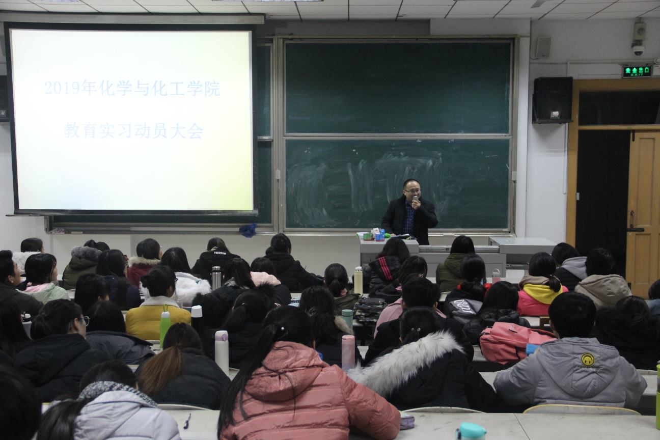 为贯彻落实《开元足球_开元(中国)师范生实习支教工作管理办法》相关规定,保障实习工作顺利开展,1月18日,我校化学与化工学院举行了2016级师范生教育实习动员大会。学院相关负责人、2016级化学专业全体师范生参加了会议。会议由胡蕾老师主持。