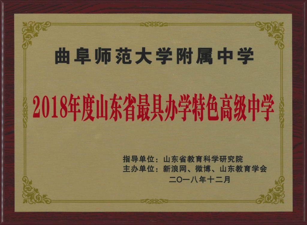 近日,由新浪网、微博主办,新浪山东承办的“2018年度山东中学教育盛典”榜单公布。我校附属中学被评为“2018年度山东省最具办学特色高级中学”。