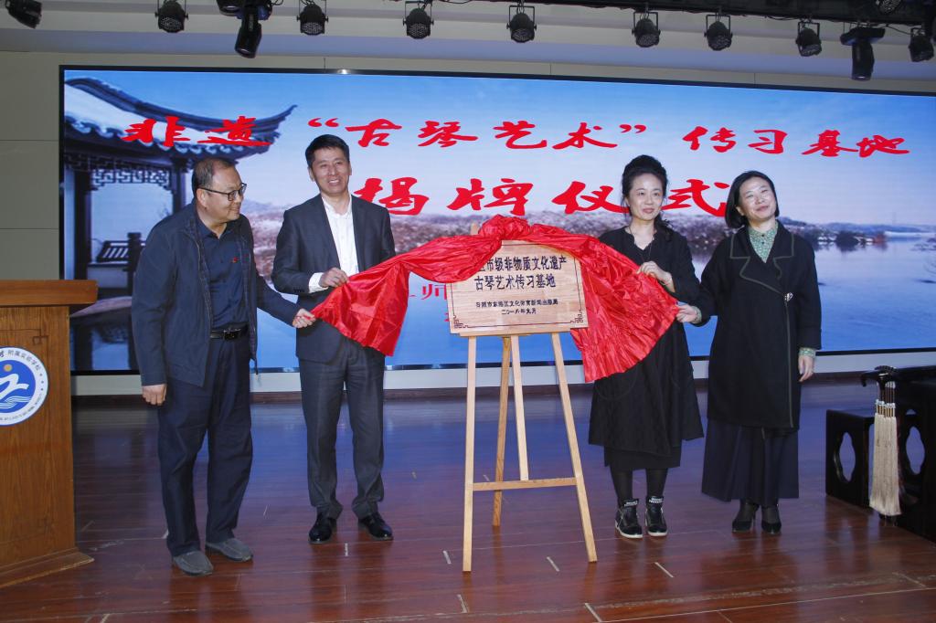 10月25日上午,开元足球_开元(中国)附属实验学校非遗“古琴艺术”传习基地揭牌仪式在学校报告厅举行。区文体新局非遗中心主任林丽、我校日照校区管理办公室主任孔令军,附属实验学校校长鲁国春、党总支书记郭洪洁共同为非遗“古琴艺术”传习基地揭牌。