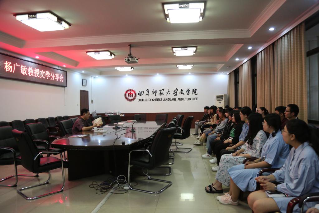 分享会上,杨广敏教授回顾了杏坛文学社的创建与发展历程,并对杏坛文学社今后的发展方向提出建议,强调杏坛文学社要更加注重历史文化的传承和专业技能的培养。随后,杨广敏教授就现代文学发展在思想和艺术领域的“不平衡”问题与文学院师生进行了探讨,并对中国古代文学理论的发展和先锋文学在当代的演进等问题表达了自己的看法;最后,杨广敏教授对文学院和杏坛文学社的发展寄予了高度期望。