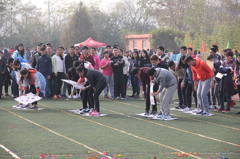 开幕式后,来自日照校区11个学院的近2000名2015级同学开始了气氛热烈的团体比赛。运动会共有搭桥过河、心心相印、双腿夹球接力、抛绣球、合力吹气球、双球赶跑、电气小火车等9个团体比赛项目,旨在培养同学们的人际沟通能力和团体协作意识,帮助大家塑造乐观阳光的心态,坚强的意志,和谐的人际关系。参赛队员积极、投入、互相配合的完成比赛项目,在欢呼呐喊声和加油声中享受着比赛。
